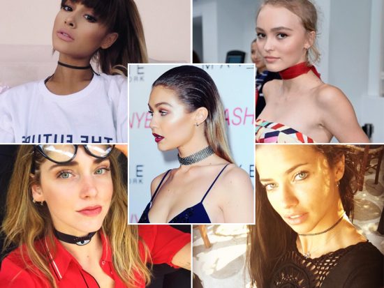 Chi era teenager negli anni Novanta sa esattamente di che cosa stiamo parlando: il choker è tornato. Quello stringhino in velluto che tanto impazzava tra le fan di Beverly Hills 90210, delle Spice Girls e di Britney Spears, è oggi un cult da avere tra gli accessori, facile da indossare con qualsiasi look. Dalla classica fettuccina in velluto, alle versioni più punk e grunge in pelle con dettagli in metallo, passando per le catenine sottili in stile minimal chic, la scelta è davvero illimitata. Meglio nero, non troppo sottile né troppo spesso, è un elemento che innalza la femminilità. Lo dimostrano anche le celeb, dalle inseparabili amiche Gigi Hadid e Kendall Jenner al clan Kardashian, dalla modella Rosie Hunthington-Whiteley alla trendsetter Alexa Chung.